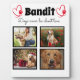 Celebrate your best friend with a custom Photo Collage plaque. When you have so many fun memories and photos, one photo isn't enough. This poster has 4 photos, a quote, and you can personalize the name of your pet. You can also change the colour of the paw print. To customize, you can change the colour and font, enter your own quote, and upload your own photos or even change the background colour. Whether you have a new puppy, or you just want to memorialize all your special moments, every dog deserves a personalized family keepsake.