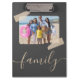 DIY Make Your Own Family personalized clipboard from Ricaso - change the five photos to your own, one on the front and four on the back 'held on' my a fun tape detail - designed with a flowing script typography (also available in other colours in store)