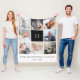Family 8 Photo Collage Monogram Black and White Fleece Blanket