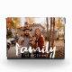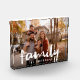 Modern trendy family photo brush script photo block. Perfect gift for relatives or friends. Design featuring of single horizontal photography and white ''family'' script in brushed font. Personalize with family name.
