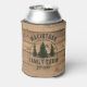 Create a personalized family cabin can cooler or coozie featuring a rustic, country wood plank design with forest pine trees and your custom text in your choice of font style and colours (shown with NAME FAMILY CABIN and year established date in green). ASSISTANCE: For help with design modification or personalization, transferring the design to another product or if you would like coordinating items, contact the designer BEFORE ORDERING via the Zazzle Chat MESSAGE tab below or email makeitaboutyoustore@gmail.com.