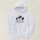 Men's pull over hoodie with your personalized family name and cabin, cottage or other desired text along with an established date and location. This custom design features rustic style typography with artwork of a moose and pine trees silhouette in black. To see more designs like this, feel free to visit my store here at "Zazzle.com/Rustic_Charm". Thanks.