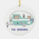 Family Camping RV Trailer Camper Round Christmas Ceramic Ornament