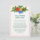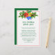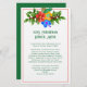 Holiday family dinner menu template with a tropical theme. Hibiscus flowers and holly branches make up the bold design along the top of this paper with bright blue text. The title wording is bold for names of the family and date, etc. as you want. The food list is added in paragraph form so you can add as much as you like, using spaces and adding names of each chef and baker - if desired. White paper is framed by a thin, reddish line and the reverse is solid bright blue.