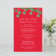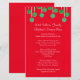 Christmas dinner menu for a family gathering. Red paper with green, ball ornaments hanging across the top. White, casual script, custom text templates for adding the holiday menu list of food. Include the name of the baker next to each dish for a more personalized menu. Makes an affordable keepsake from year to year.
