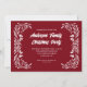 A simple family Christmas party invitation showcasing hand drawn white winter greenery on a dark red background.
