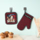 Family Christmas Personalized Red Plaid Photo Oven Mitt & Pot Holder Set