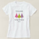 This adorable Family Christmas t-shirt can be personalized with your family name. Three festive trees in shades of pink, purple, and green, your family name, and the year are all featured on the design.