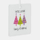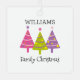 A cute and simple Christmas design with pink, purple, yellow, and green Christmas trees. Add your family name to make it unique. By clicking on the customize button, you can also change the text "Family Christmas". Change the sample photo on the back of the ornament with your own.