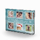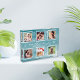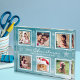 Photo display for a family with a Christmas theme and a six photos collage. This is our exquisite Photo Block Gift, a timeless keepsake designed to capture the essence of the holiday season. Against a soft pastel blue background, this plaque offers a dreamy and classic ambiance that evokes feelings of nostalgia and warmth.