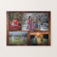 Family collage 4 photos on rustic wood jigsaw puzz puzzle