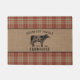 Family Farmhouse Rustic Cow Red Plaid Burlap Doormat
