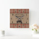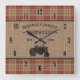 Family Farmhouse Rustic Tractor Red Plaid Burlap Square Wall Clock