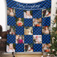 Family Holiday Blue Patchwork Plaid Photo Collage Fleece Blanket