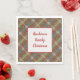 This pattern began with a green barrel cactus with several red blooms and ended up a beautiful, abstract holiday pattern. I love the shapes and colours that stand out on these holiday napkins. Quickly and easily personalize with your family name to create a beautiful and unique addition to your Christmas entertaining. Look for our matching paper plates in our store.