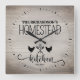 A classic design of faux wood grain with your family's homestead name personalized, with cute silhouettes of common kitchen utensils and chickens.