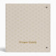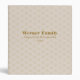 Name of the Family printed in ochre serif font, with initial repeated all over the grayish beige background... to store your documents and notes... make it easy to organize and find... a modern and elegant professional touch