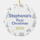 This cute and colourful ornament is perfect for the holidays. A round photo on the front with a name and year on the back make this the perfect gift for grandparents. Get a photo ornament each year to chronicle the growth of your child or grandchild. Design features a modern tree with colourful baubles. Tree is outlined in silver.