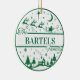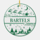 Add a fun and classic touch to your tree this year with a personalized ornament that can be passed down for generations. The traditional green and white design features a cozy home surrounded by pine trees while Santa and his reindeer fly overhead in the night sky. Makes a great gift that can be passed down as a family keepsake for years to come!