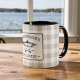 A beautiful, rustic themed, two tone coffee mug with your personalized family name, lake house, fishing cabin or other desired text and it's established date. This custom design features rustic style typography with artwork of a fish and boat oars and framed in a white plaid style print with shades of soft grey. Feel free to visit my designer store to see more items and designs like this. Thanks.