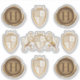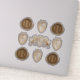 Take a step back in time with our striking royal muse die-cut monogram design stickers. Inspired by the iconic era of the medieval ages and fantasy realms. Our royal muse design is perfect for those seeking a lavish, regal, yet modern-day medieval aesthetic. Every element is originally hand-drawn by us, right down to the last detail. Sticker sheet contains four of our hand-painted faux gold monogram fax seals and four of our hand-drawn family shield crest monogram emblems with one of our hand-drawn lion shield monogram emblem design. Personalize with your own monogram initials to create a truly unique personalized look. All of the artwork are meticulously hand-drawn by us. Personalize the text and font to suit your design preferences.