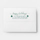 Modern, Elegant Minimalist Green and White Hand Lettered Christmas Family Return Address Envelopes. Featuring a pretty hand-written script "happy holidays" saying in swash-tail font type and little pine trees. Great for Christmas holiday season, easy to personalize them with your names and return address info.