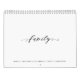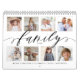 Send a beautiful personalized gift to your family that they'll cherish. Special personalized family photo collage calendar to display your own special family photos and memories. The front cover design features a simple 8 photo collage grid design with "Family" designed in a beautiful handwritten black script style. Each photo is framed with a simple gold-coloured frame. Customize with family members' names. Each month features a single full-size image with the month written in elegant black calligraphy displayed slightly over each photo.