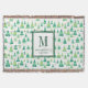 Family Monogram Initial Christmas tree pattern throw that features a bordered family initial monogram with your family name and the date it was established. Helping to brighten up your holiday season home decor.
