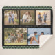Family Name 5 Photo Collage Green Plaid Modern Sherpa Blanket