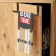 Modern illustration for BBQ fans. The backdrop is stripes in watercolor brown and white with your family name.