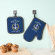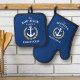 A beautiful oven mitt & pot holder set featuring a custom designed boat anchor, gold style laurel leaves and a gold star with your personalized name and "Beach House" in nautical style typography. This design is in white and gold colours on classic navy blue or easily edit the design to change the background colour to match your décor. Purchase the set or indivadually as needed. Makes a great gift.