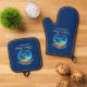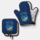 Family Name Beach House Sun Palm Trees Blue Oven Mitt & Pot Holder Set