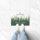 A beautiful, rustic themed doormat with your personalized family name and cabin, lodge or other desired text and it's location. This custom design features artwork of a pine tree forest silhouette in shades of forest and hunter green. Feel free to visit my designer store to see more items and designs like this. Thanks.