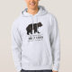Men's pull over hoodie with your personalized family name and cabin, cottage or other desired text along with an established date and location. This custom design features rustic style typography with artwork of a bear silhouette in shades of brown and black. To see more designs like this please visit my store "Rustic_Charm" here at Zazzle. Thanks.