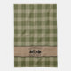 Family Name Cabin Trees Sage Green Plaid Burlap Kitchen Towel