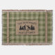 Family Name Cabin Trees Sage Green Plaid Burlap Throw Blanket