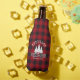 Name Family Christmas Red Buffalo Plaid with Pine Trees Bottle Cooler - Great for the Christmas Holidays