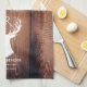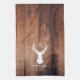Family Name Monogram Lake Rustic Deer Antler Wood Kitchen Towel