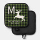 Bring the serene beauty of the wilderness into your kitchen with this pot holder, featuring a rustic deer silhouette, your family’s monogram, and the date of establishment of your cabin or cottage on a traditional vintage green and black Buffalo Lumberjack plaid pattern design. This kitchen essential is a harmonious blend of nature’s tranquillity and personal charm; it’s also a piece of art that celebrates your love for the outdoors and family heritage with every dish too hot to handle without a potholder!