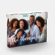 Create a sweet family keepsake with this modern freestanding acrylic photo block. Add your favorite horizontal or landscape oriented photo with your family name overlaid in white handwritten style modern calligraphy lettering.