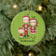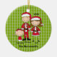 This will be a keepsake of all times! It's an adorable family dressed in red Santa outfits and hats. It has a light green background with darker green dots in a row. There's a Dad, Mom, and a baby girl . Check out the other family combinations and ornaments in our store. ©JW Illustrations