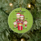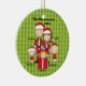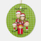 This will be a keepsake of all times! It's an adorable family dressed in red Santa outfits and hats. It has a light green background with darker green dots in a row. There's a Dad, Mom, a baby girl and young boy, and an older sister. Check out the other family combinations and ornaments in our store. ©JW Illustrations