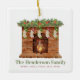 This Christmas ornament is the perfect way to honour your family during the holidays. It features a beautiful, watercolor fireplace adorned with five stockings. Each stocking has a monogram letter for each family member. Add your family name and the names of each family member at the bottom.
