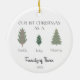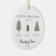 The Family of Three First Christmas Ornament, with sage green watecolour trees, is an ideal decoration for your Christmas tree, adding festive charm to the season. The ornament is ideal as a keepsake, symbolising the joy of the baby's first Christmas and the happiness shared by the entire family. Note, the names and year can be customised. For further customisation, please click the "Edit Using Design Tools" link and use the design tool to modify this template.
