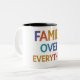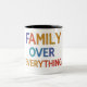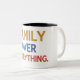 A stylish t-shirt design featuring the phrase "Family Over Everything" in bold, modern typography. The text is accented with subtle decorative elements like a heart, intertwined vines, or a circular emblem symbolizing unity. The design emphasizes warmth and togetherness, ideal for family gatherings or casual wear. It can feature neutral colours for versatility or vibrant tones for a lively touch.