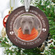 A beautiful, rich faux walnut wood grain frame photo memorial keepsake ornament you personalize with your favourite photo of your pet, their name and years of life spent with your family.