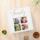 Personalized binder with 4 photo collage spaces and name typography. White with tan accents. Add your favourite photos on this sleek background.