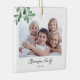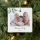 This Family Photo Christmas Ornament is decorated with watercolor mistletoe and stylish script typography.