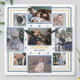 Family Photo Collage 9 Pic Name Blue Yellow Stripe Square Wall Clock