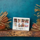 Make your own unique family photo collage. Use four, 8 of your favourite photos of your family, friends or pet! An ivory cream coloured background. Black text: our family - with a heart. Add a year.